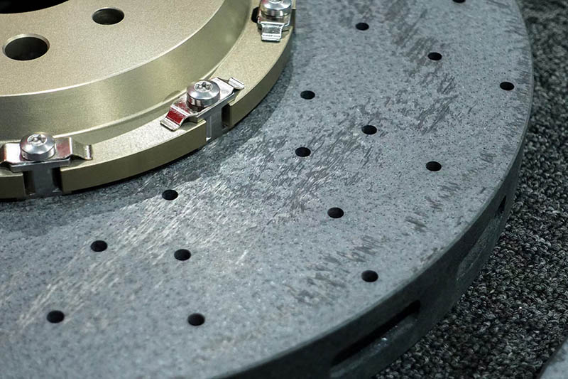 Carbon Ceramic je kompozitný materiál s dvojitou matricou, trojrozmerná plsť alebo oplet z uhlíkových vlákien ako výstužný skelet a matrica zložená z uhlíka (C) a karbidu kremíka (SiC). Materiál je teda kombinovaný s výhodami uhlíka a SiC, s vysokou húževnatosťou, nízkou hustotou, dobrou tepelnou stabilitou, odolnosťou voči tepelným šokom a vysokou tvrdosťou. vysoká odolnosť proti oderu a veľká odolnosť proti oxidácii. V prostredí s vysokou teplotou môže uhlíková matrica poskytnúť tlmenie a húževnatosť pre teplo, aby sa zabránilo prasknutiu materiálu, môže stiahnuť teplotu najmenej 1650 ° C. Výrobný proces zahŕňa najprv prípravu C/C kompozitného materiálu a potom zavedenie SiC fázy pomocou metód, ako je impregnácia tekutým kremíkom. Napríklad C/C predlisok sa najskôr pripraví s použitím metód, ako je chemické nanášanie pár alebo karbonizácia impregnáciou živicou. Potom sa predlisok uvedie do kontaktu s tekutým kremíkom, kde kremík reaguje s uhlíkom pri vysokej teplote za vzniku SiC, pričom súčasne vypĺňa póry v predlisku. Vďaka vynikajúcim komplexným vlastnostiam sú karbónové keramické kotúče široko používané v pokročilých stíhačkách, vysokorýchlostných koľajniciach, pretekárskych autách a športových autách atď. Materiál môže spĺňať prísne požiadavky na vysoké rýchlosti, vysoké zaťaženie a vysoké teploty v brzdovom systéme pre tieto špičkové zariadenia.