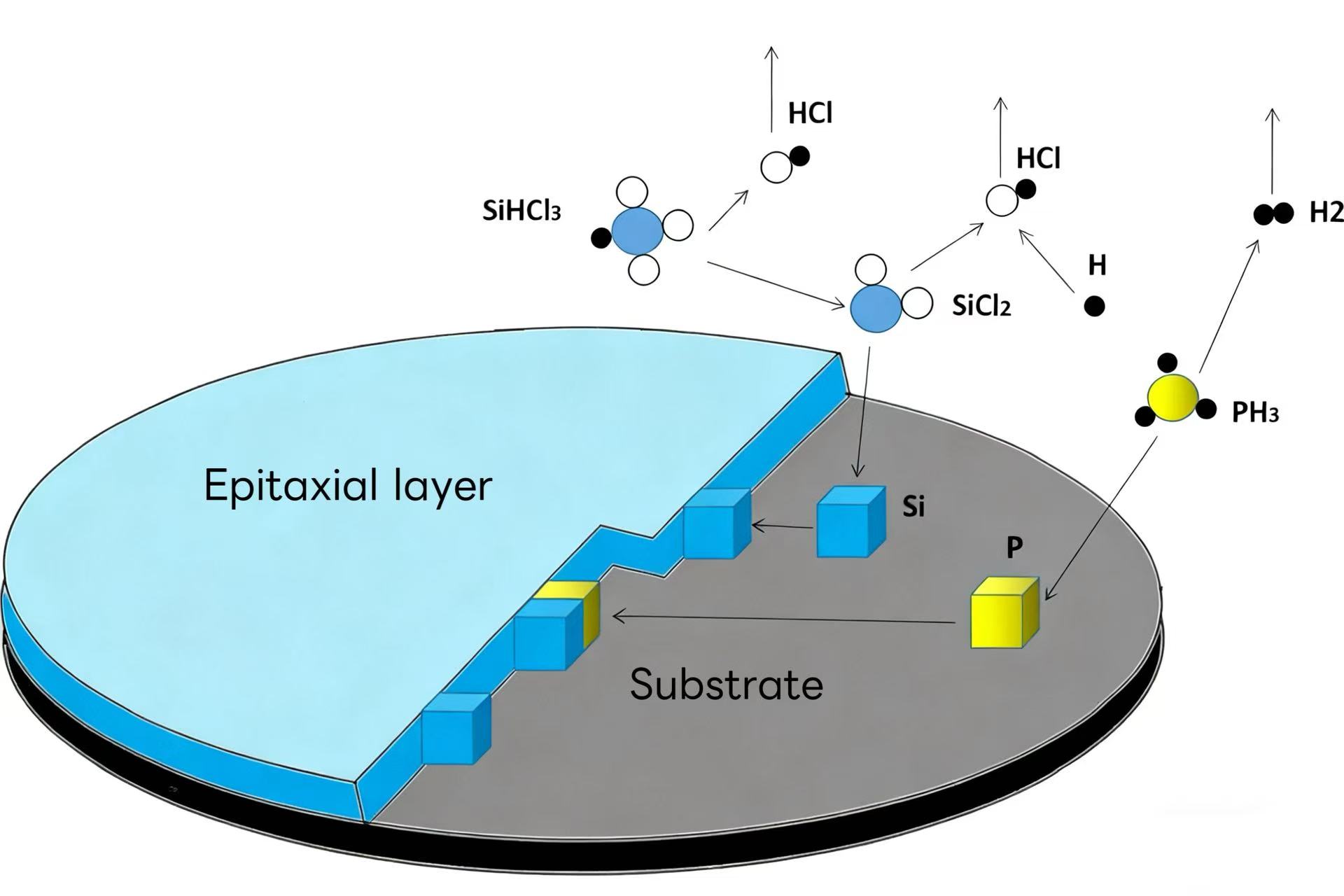 Silikónová epitaxia vo všeobecnosti využíva parnú fázovú epitaxnú pec. Jeho princíp spočíva v tom, že rozklad zdroja kremíka (ako je silán, dichlórsilán, trichlórsilán a chlorid kremičitý reaguje s vodíkom za vzniku kremíka. Počas rastu sa môžu súčasne zavádzať dopingové plyny ako PH3 a B2H₆. Koncentrácia dopovania je presne kontrolovaná parciálnym tlakom plynu, aby sa vytvorila špecifická epitaxná vrstva so špecifickou epitaxnou vrstvou.