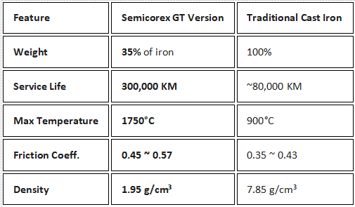 Verzia Semicorex GT sa vyrába pomocou tretej generácie výrobného procesu LCCM (Long Carbon Fiber Ceramic Matrix). Na rozdiel od štandardných rotorov tieto systémy využívajú ako primárnu surovinu vysokokvalitné uhlíkové vlákna T700-6000 pochádzajúce z Japonska alebo Spojených štátov.