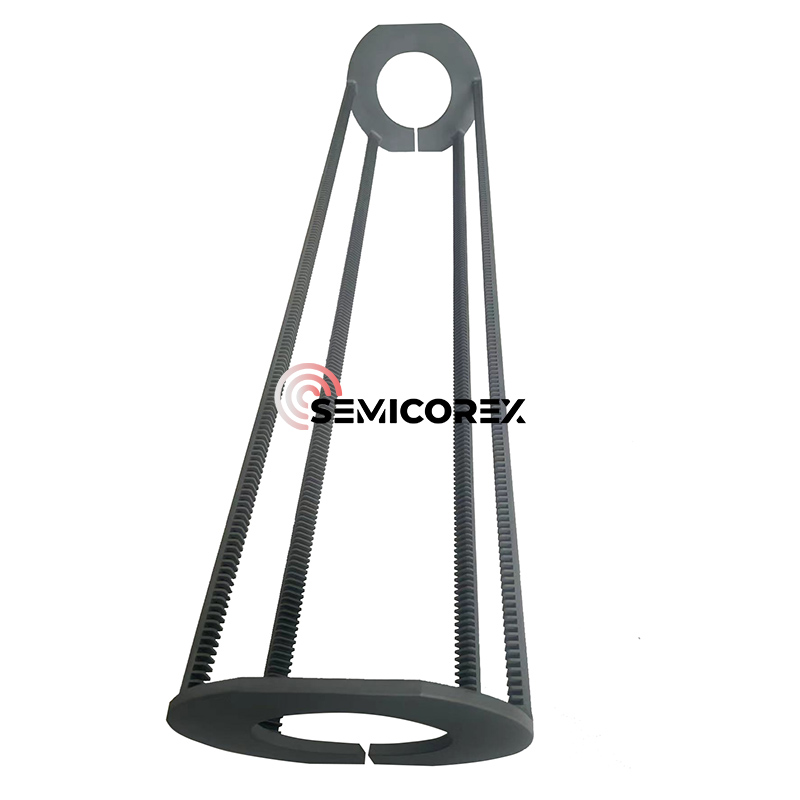 Vertikálne prostredie na spracovanie pecí vyžadujú podporný systém oblátok, ktorý vydrží opakované expozície pri vysokej teplote, často presahujúc 1 200 ° C a zostane dimenom-šikanovo stabilný bez problémov s kontamináciou. Vertikálne lode SIC vynikajú v ich robustnosti v týchto situáciách kvôli vnútorným mechanickým a tepelným vlastnostiam rekryštalizovaného karbidu kremíka alebo CVD. Ich extrémne nízky koeficient tepelnej expanzie zaisťuje minimálnu deformáciu alebo skreslenie v dôsledku rýchleho tepelného cyklu. Okrem toho vysoká tepelná vodivosť ponúka najväčšiu miestnu teplotnú homogenitu vo všetkých doštičkách, čo je rozhodujúce pre konzistenciu doštičiek v hrúbke vrstvy, profilov dopingu a elektrického výkonu; Dôležité aspekty výroby s vysokým objemom v polovodičovom priemysle.