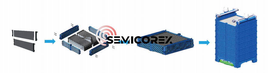 Typicky sa celá membránová veža skladá z 8 vrstievmodul z karbidu kremíkaa jedna zostava modulu z karbidu kremíka obsahuje 42 plochých membránových dosiek. Celá membránová veža je spojená a podopretá plastovým plášťom vystuženým NORYL, čím sa eliminuje potreba kovových rámov alebo hadicových spojov medzi membránovými prvkami z karbidu kremíka. Každá štandardná membránová veža obsahuje dva kanály na výrobu vody a je navyše vybavená armatúrami na výrobu vody a prevzdušňovacími armatúrami, aby splnili požiadavky na veľkokapacitnú výrobu vody.