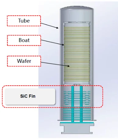 Semicorex pevná látkarebrá z karbidu kremíkasa zvyčajne inštalujú ako komponenty tepelnej izolácie vo zvislých rúrach pecí zariadení na tepelné spracovanie polovodičov, ako sú žíhacie pece RTP a difúzne pece. Pevné rebrá z karbidu kremíka Semicorex môžu účinne regulovať rozloženie teploty vo vysokoteplotných peciach a minimalizovať tepelné poškodenie častí tesnenia dvierok spôsobené vysokými teplotami. V prevádzkových podmienkach oxidácie za mokra je možné použiť pevné rebrá z karbidu kremíka Semicorex na účinnú prevenciu negatívnych vplyvov na výsledky procesu a polovodičové zariadenia spôsobené kondenzáciou vodnej pary pri relatívne nízkych procesných teplotách.