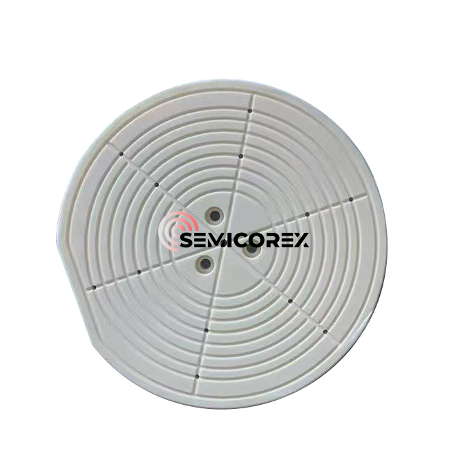 SemiCorex Wafer Edge Grinding Chuck je vyhradená keramická časť vyrobená pre proces brúsenia oblátkov počas výroby polovodičov. Keramika je vyrobená z vysokej čistoty, bieleho hlinitého (al₂o₃) s mechanickou pevnosťou, chemickou rezistenciou a rozmerovou stabilitou na podporu procesu mletia oblátok. Keďže nové technológie vyžadujú väčšie priemery oblátky a jemnejšie štruktúry v zariadeniach, brúsenie okrajov do oblátky teraz zohráva významnú úlohu pri prevencii štiepania, mikrokrakovania a výnosu. Keramická mletie hlinitého Chuck poskytuje stabilnú základnú hodnotu, na ktorej spĺňa tieto prísne výrobné požiadavky.